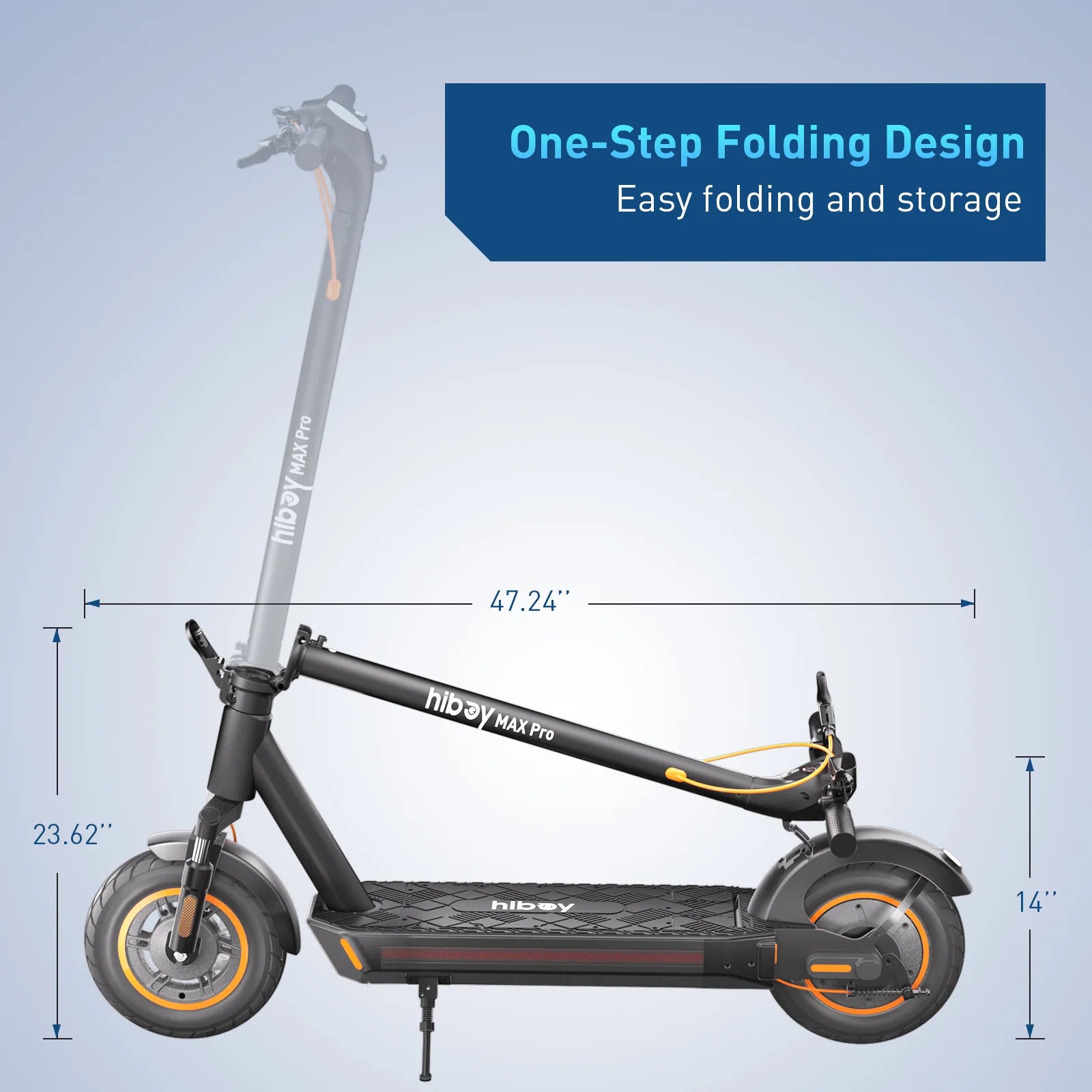 Are you looking for exhilarating power? Our high-performance models boast long-range batteries and powerful motors for non-stop fun. Hiboy Max Pro is a fantastic lightweight electric scooter for adults carefully created for thrill-seekers and travel enthusiasts. It has 11-inch pneumatic tires that give a comfortable ride on all roads and seasons. With speeds of up to 22mph, the Hiboy Max Pro makes daily commuting easier, guaranteeing a pleasurable and joyful ride. On a single charge, this electric scooter runs seamlessly for 46.6 miles. E-braking and disc-braking are additional for dual support and a quick braking system, ensuring complete safety.